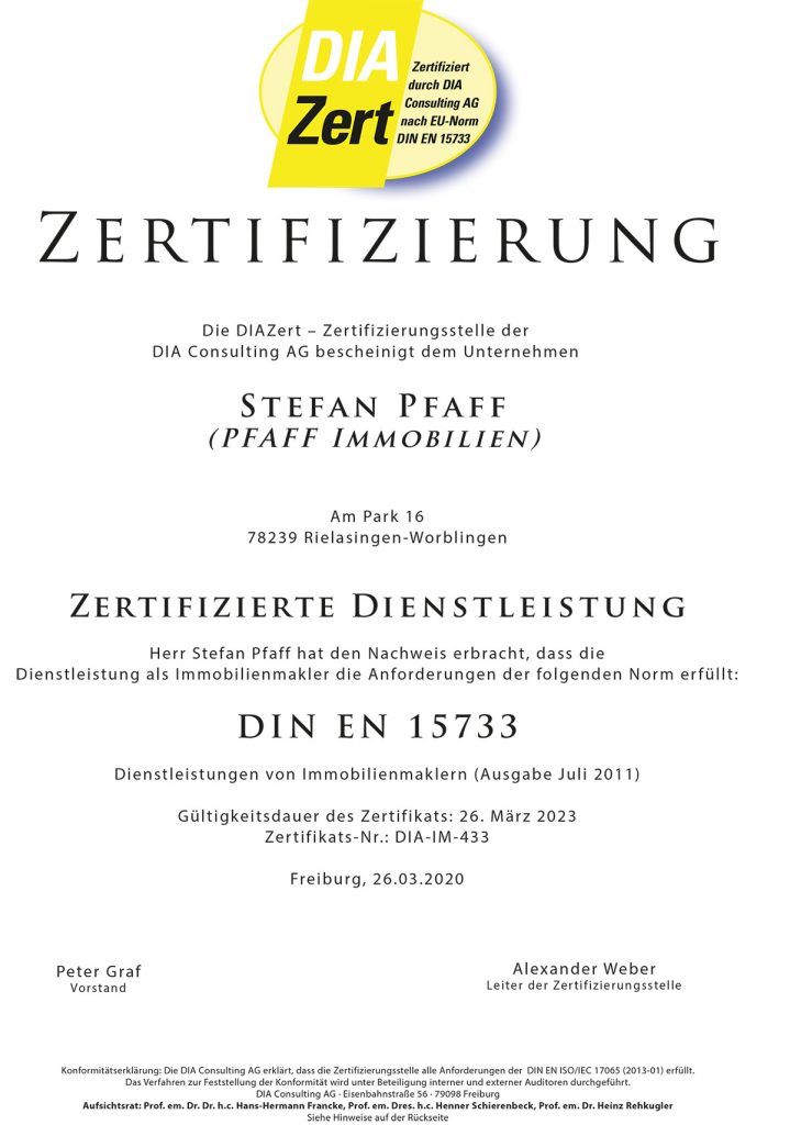 PFAFF Immobilien ist Mitglied in anerkannten Verbänden der Immobilienwirtschaft und ortsansässigen Organisationen von Rielasingen-Worblingen